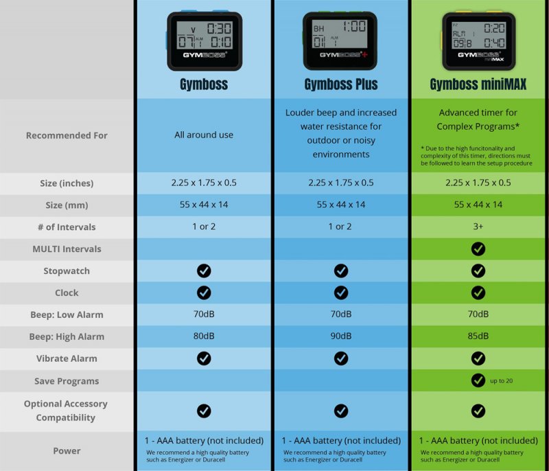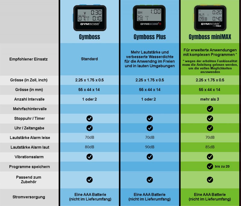 Die Gymboss Minimax Intervall-Timer-Stoppuhr ist ein kleines, einfach zu bedienendes Gerät im Dual-Modus. Dieser Timer, der sich für viele Einsatzgebiete bestens eignet, hat verschiedene Funktionen, die sich bei vielen Arten von Übungen vorteilhaft erweisen. Nicht mehr auf die Uhr schauen! Die Gymboss-Timer-Stoppuhr erlaubt Ihnen, all Ihre Konzentration auf das Training zu richten, was Ihnen helfen wird, bessere Ergebnisse zu erzielen! Machen Sie mehr aus Ihrem Training und versuchen Sie Ihre Leistungen zu maximieren: Anaerobe-Ausdauer, Cardio-Ausdauer, erhöhte VO2max, Muskelkraft, Umfang, Fettabbau.
